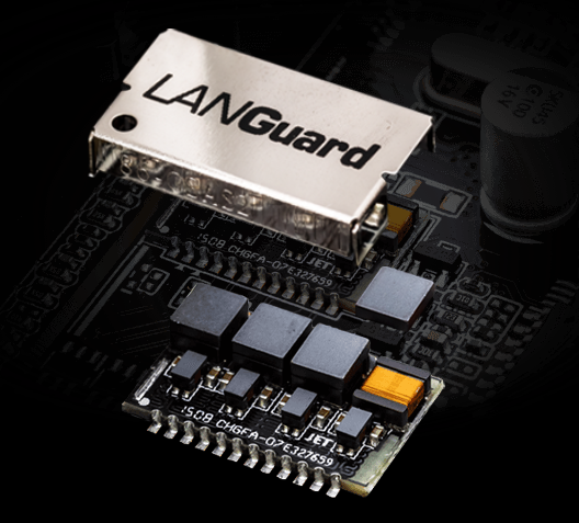 A ASUS LANGuard é uma proteção de hardware que une a tecnologia da junção de sinal e os condensadores anti-EMI (interferência eletromagnética) montados na superfície, para garantir ligações mais confiáveis e melhores desempenhos, além de componentes protegidos e com alta tolerância à eletroestática e picos de tensão.