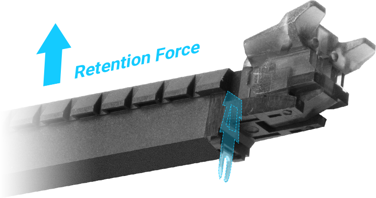 A trava em forma de asa é fácil de alcançar e de mexer. Pressione levemente a trava Q-Slot e a placa de vídeo sairá facilmente. Assim, até a instalação ou remoção de placas de vídeo grandes será um processo bem simples!