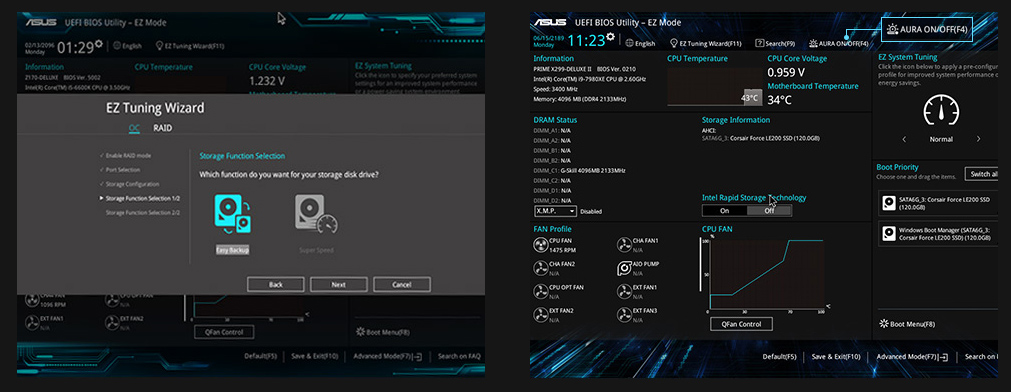 A renomada UEFI do BIOS da ASUS fornece tudo o que você precisa para configurar e ajustar seu sistema. Ele oferece opções inteligentemente simplificadas para iniciantes em PC DIY, além de recursos abrangentes para veteranos experientes.